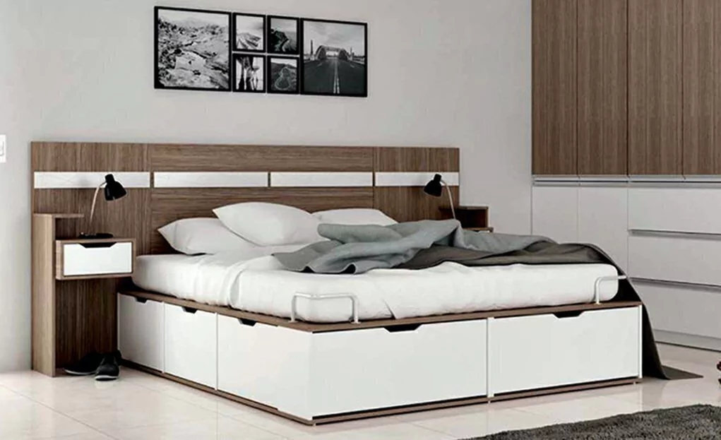 Respaldo para cama de 2lazas con mesas de luz integradas, modelo Europa.